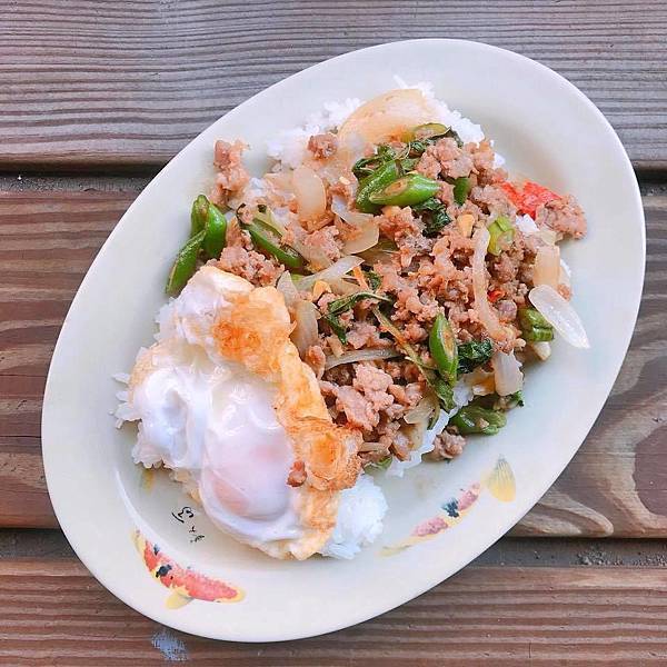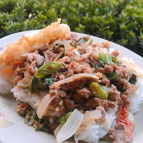 這家打拋是以絞肉、辣椒、四季豆、洋蔥下去炒的,