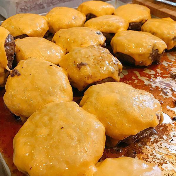 搭配著酸黃瓜、洋蔥丁、番茄醬、起司片,