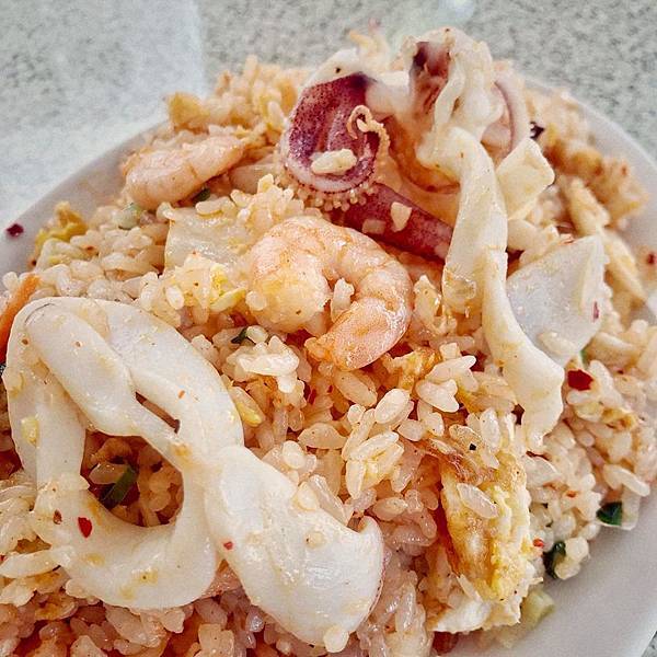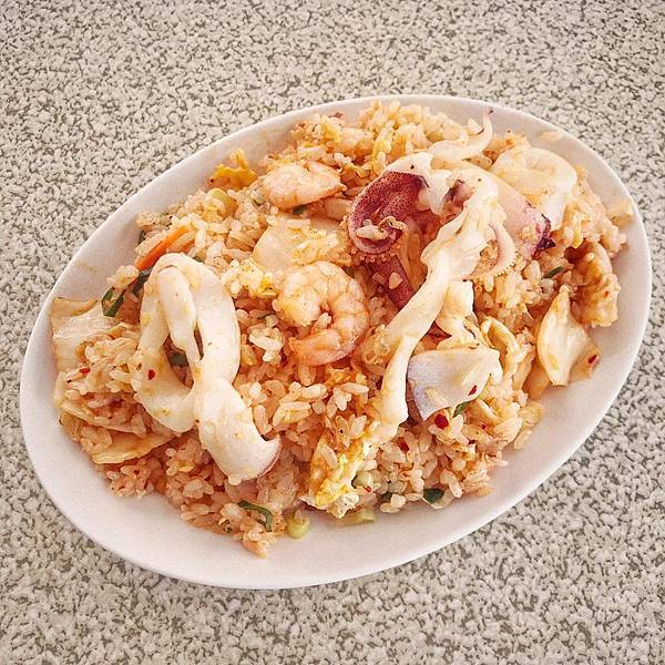 飯粒伴著泡菜、海鮮大炒之後,吃起來粒粒分明,