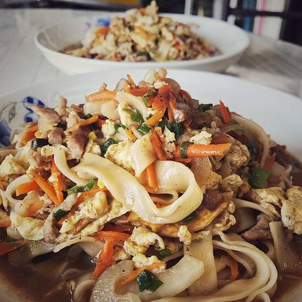 但在台南常見的大多都用油麵或意麵去炒,