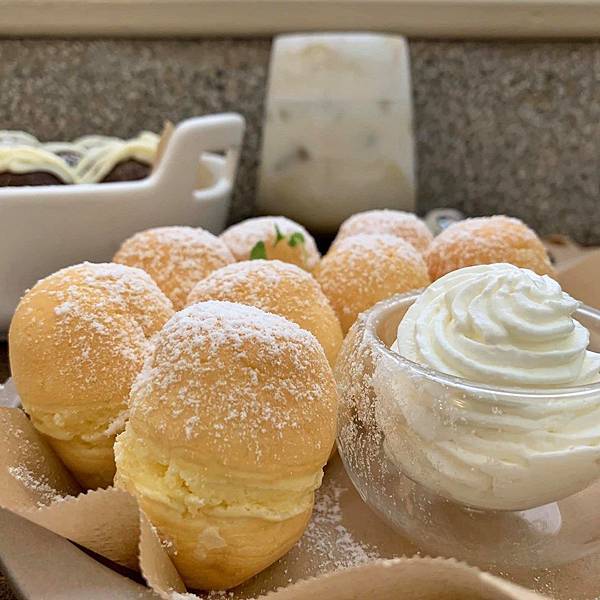 吃起來有種酥軟的口感,隨餐附的鮮奶油甜而不膩。