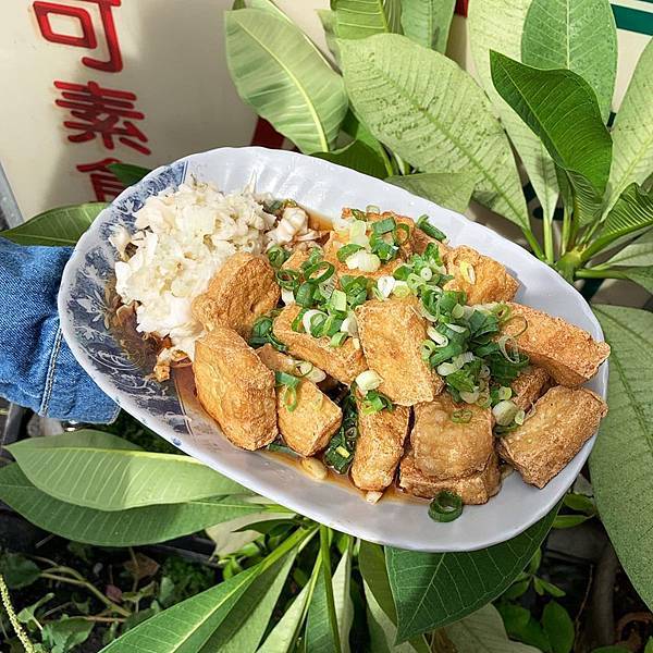 聽說豆腐先用古早工法青草浸泡,再下鍋油炸到呈金黃色。